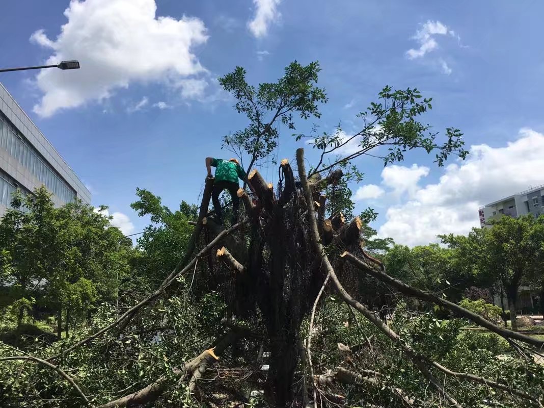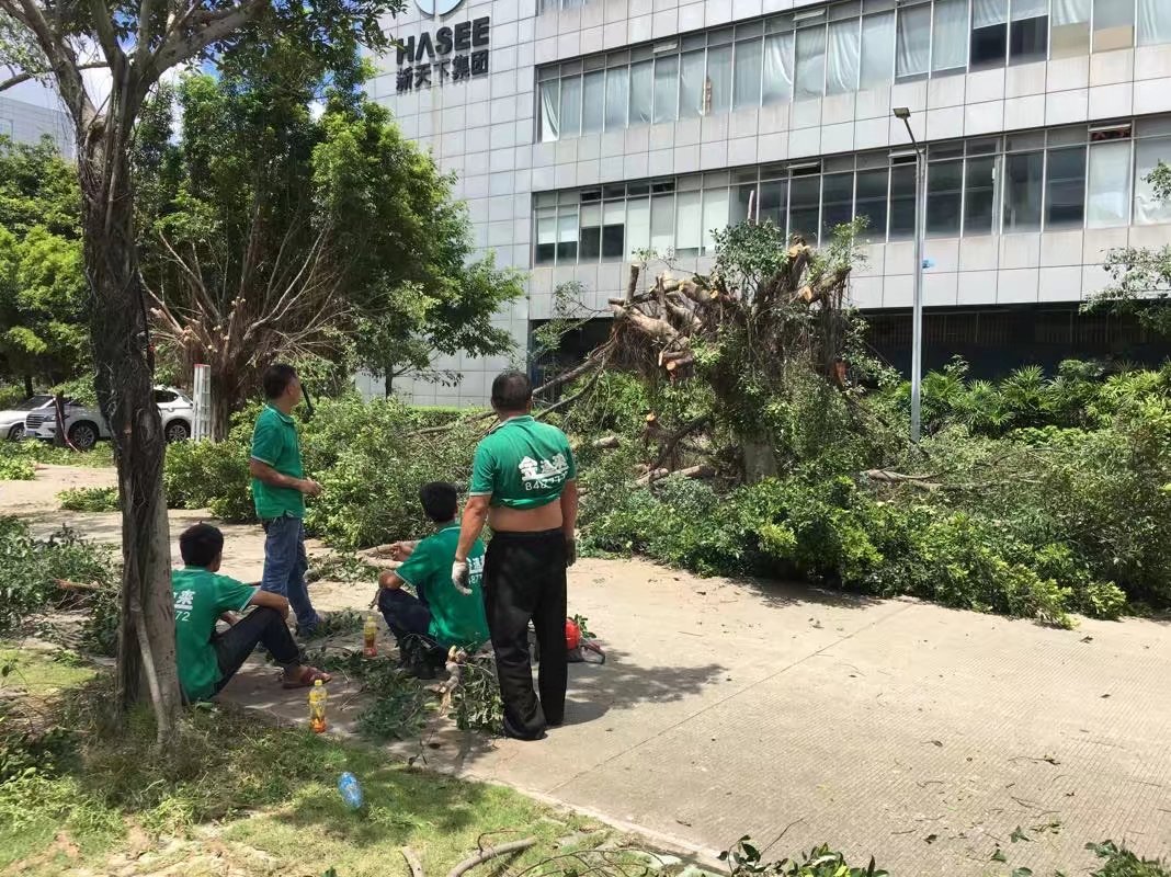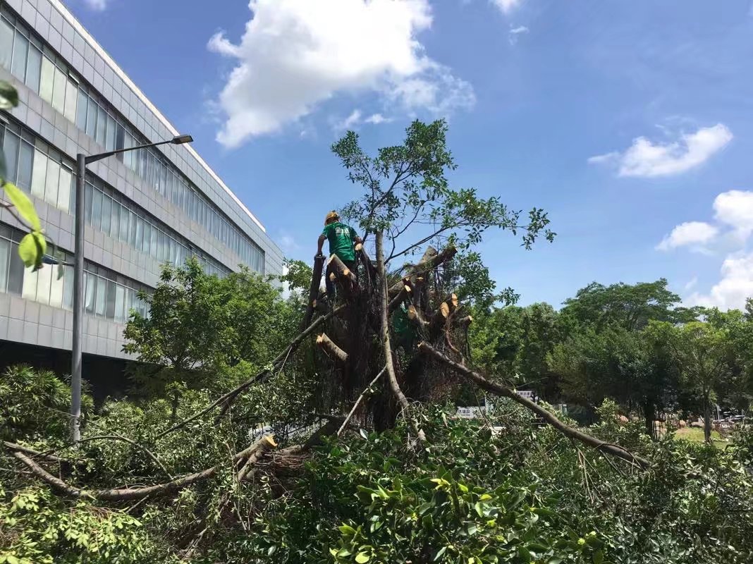 深圳龙岗某大型工业园,小叶榕修剪砍伐中……金速来绿化小分队上门服务中……