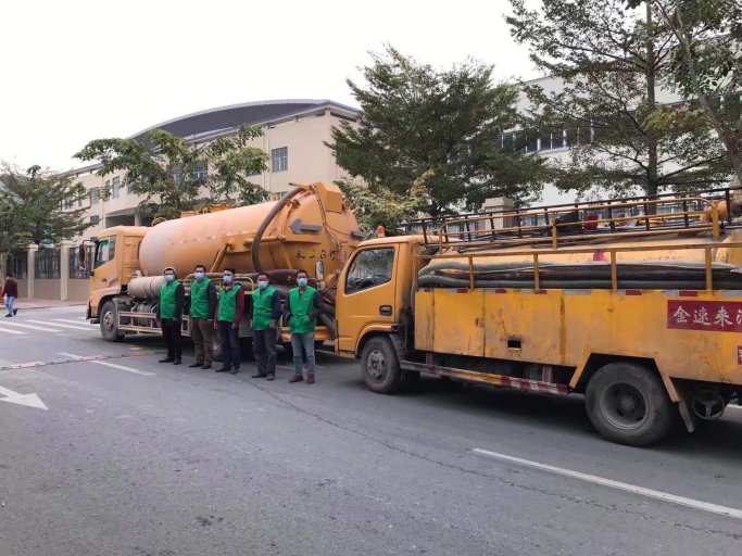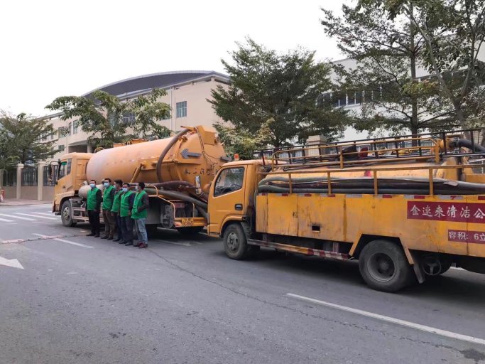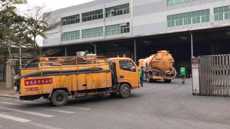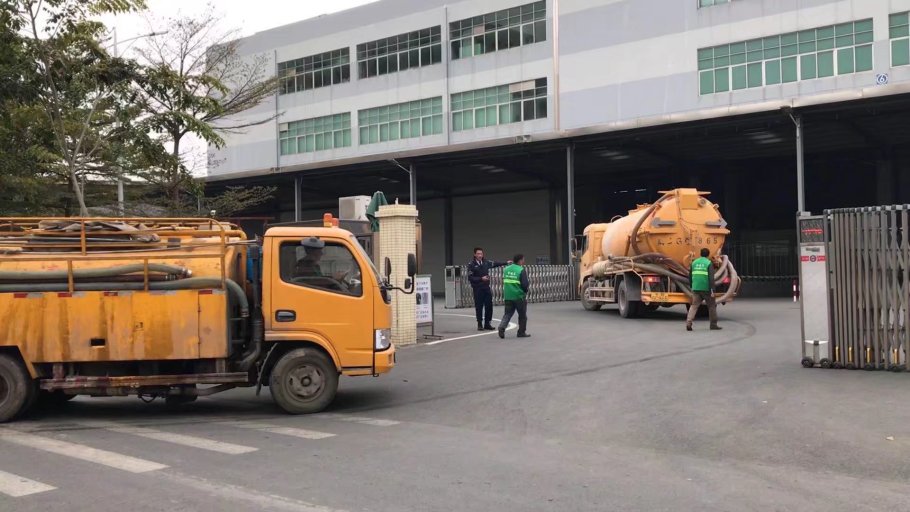 东莞某大型苹果手机供应商清理工业沉淀池垃圾 清理淤泥池……金速来公司派遣35吨重泵淤泥车和高压清洗车 双车作业……今天的任务是870个立方米淤泥池清理干净…………