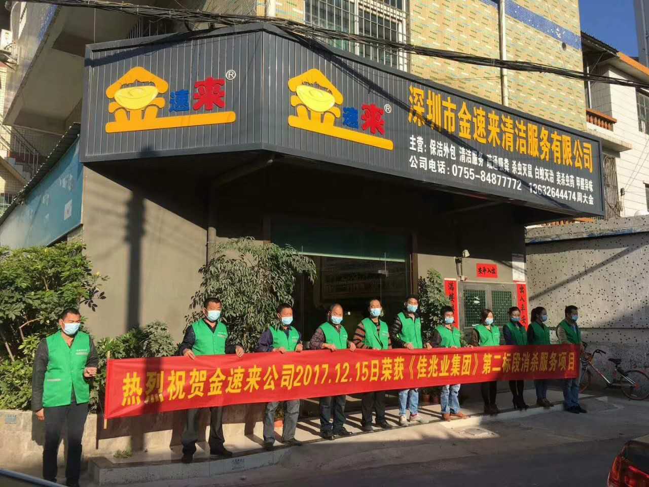 热烈祝贺金速来深圳总公司荣获2017-2018年(佳兆业集团)第二段消杀灭四害服务......一支凝心聚力、彪悍、锐志、而又精干的队伍.......随时等待广大新老顾客的调遣.......金速来公司定当不负众望.....