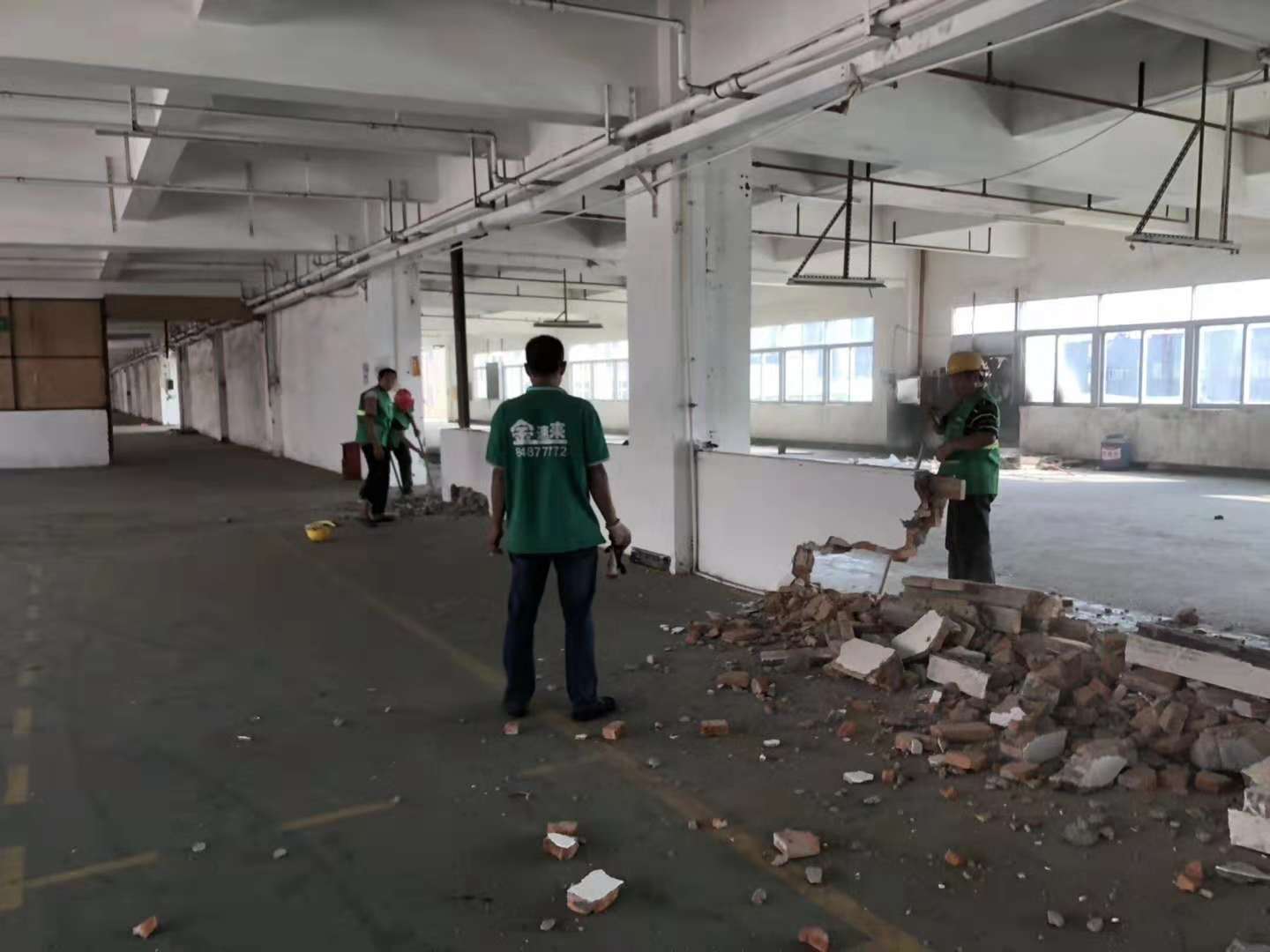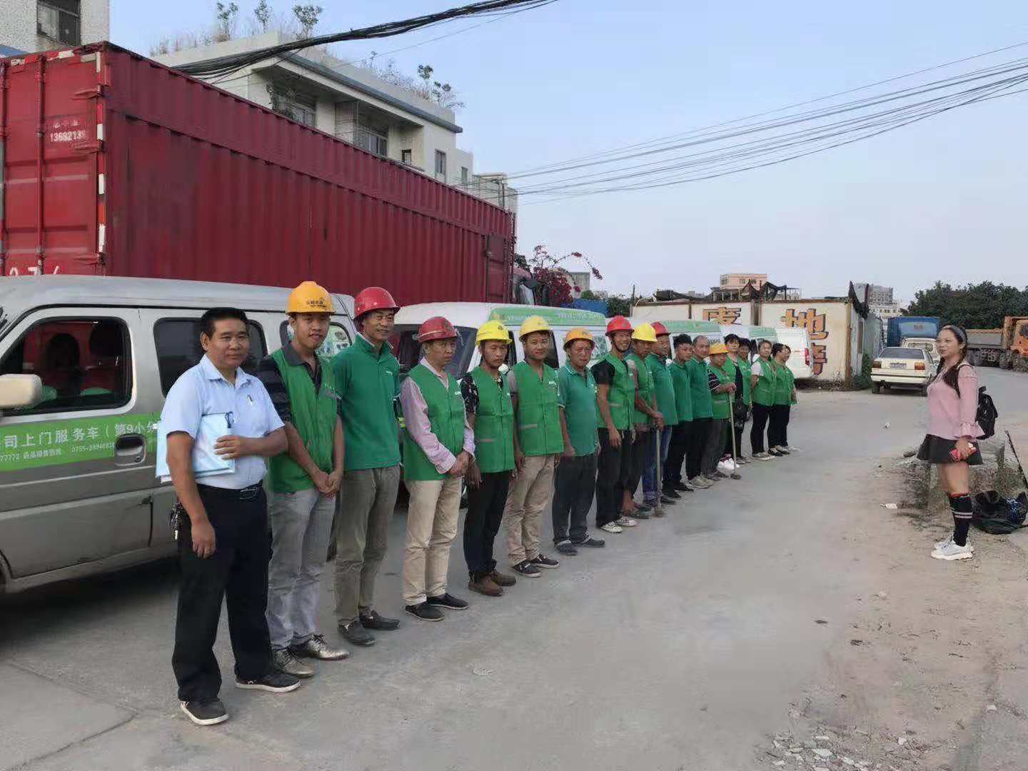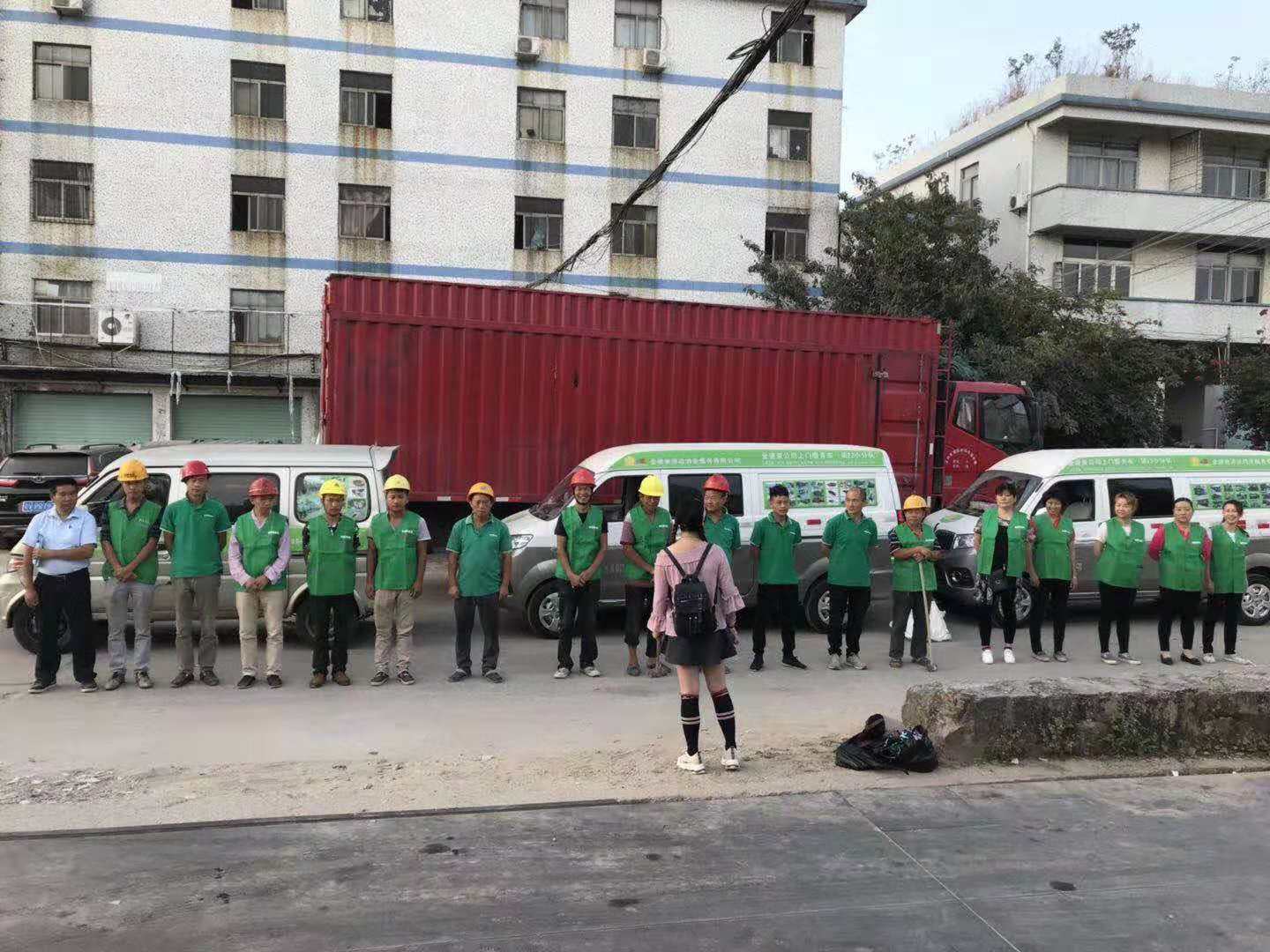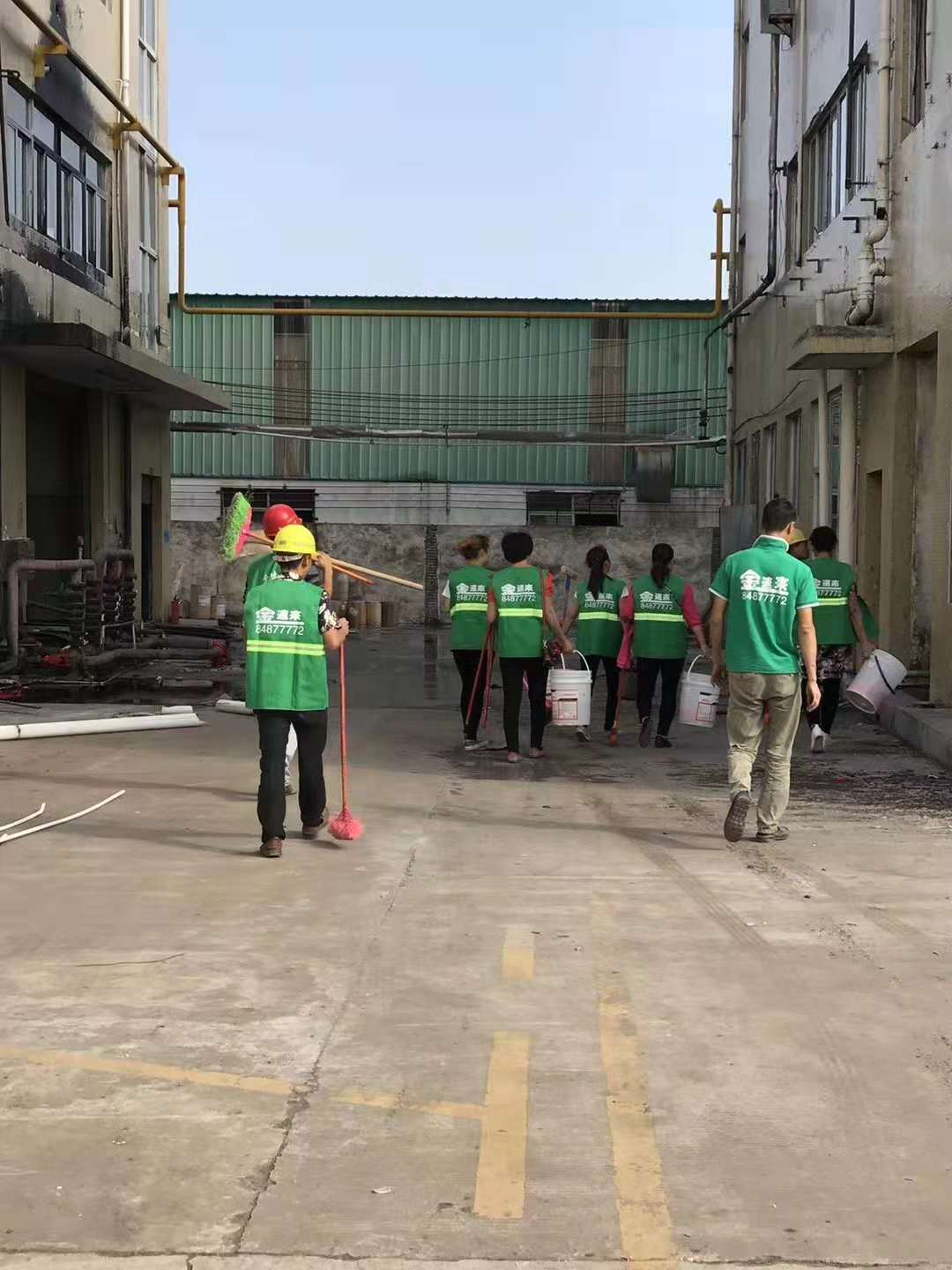 今天金速来两支队伍合计65人开往东莞开展某大型工业园开荒大清理……清洁服务,爆破拆墙,清运垃圾,清洗外墙等综合性后勤保障服务…………