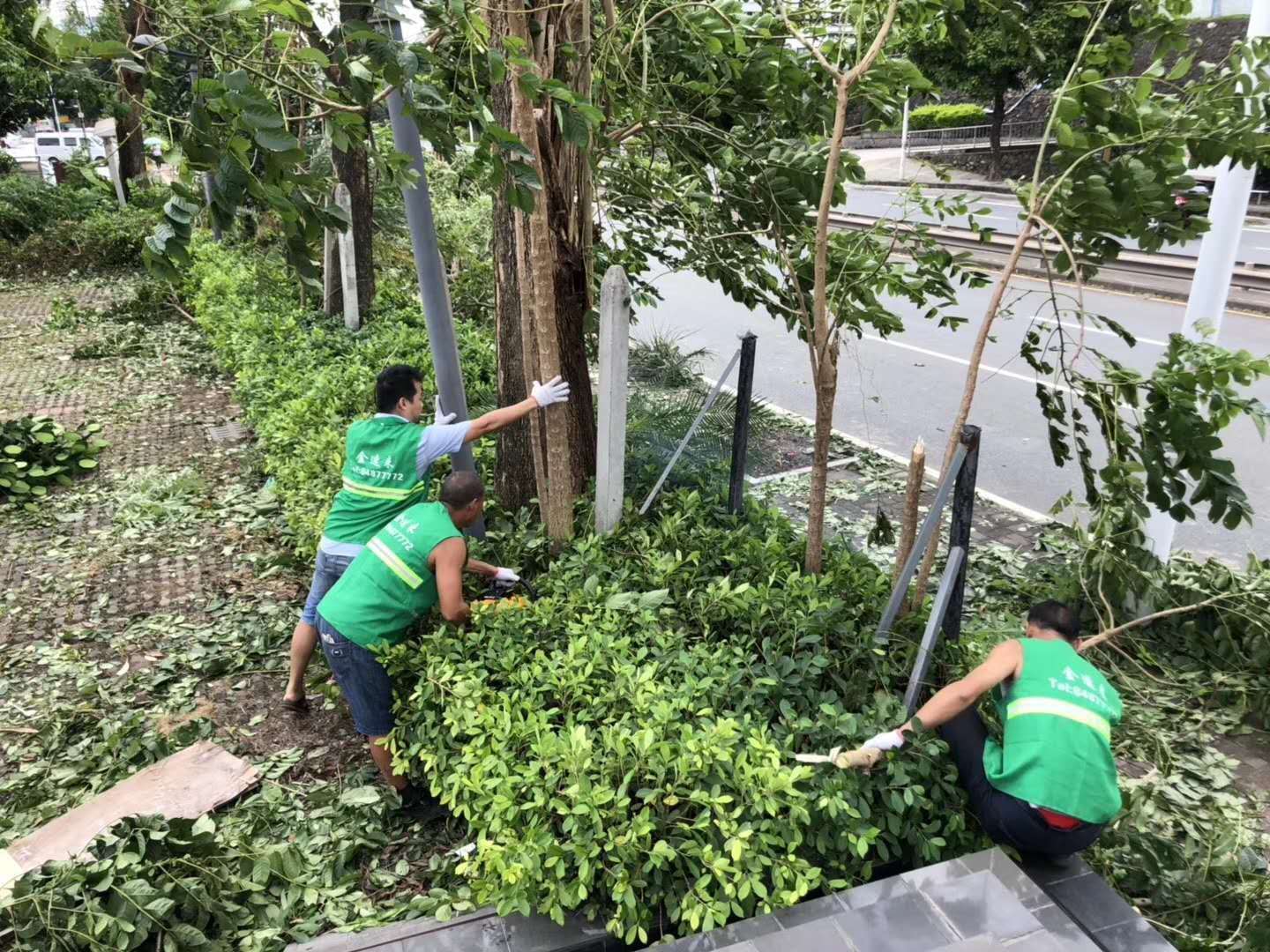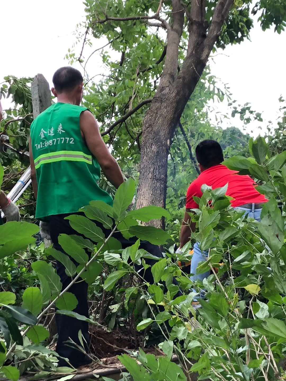 龙岗坪山街道绿化维护保养中……砍树修枝剪叶……金速来,第16小分队正在作业中……